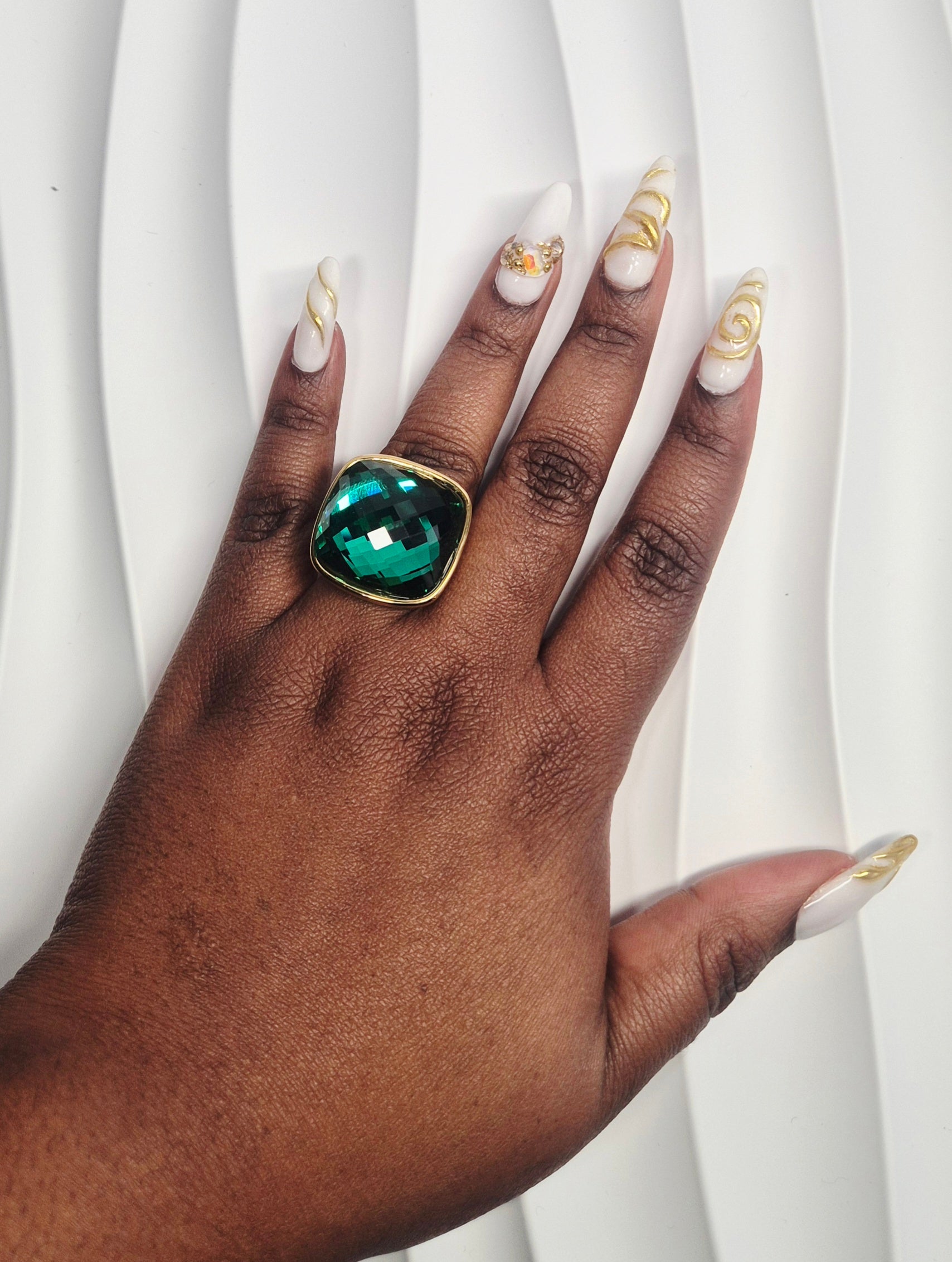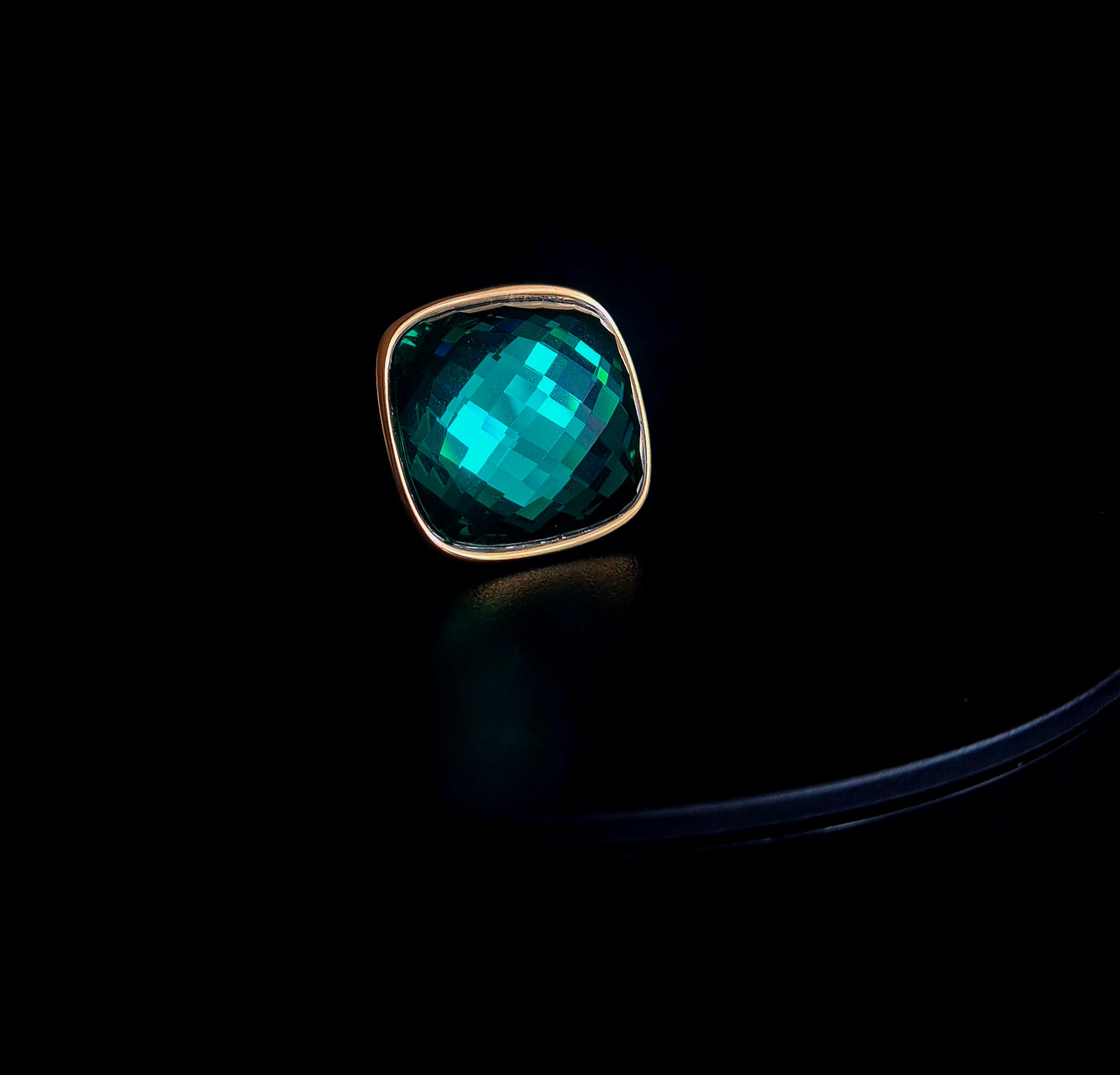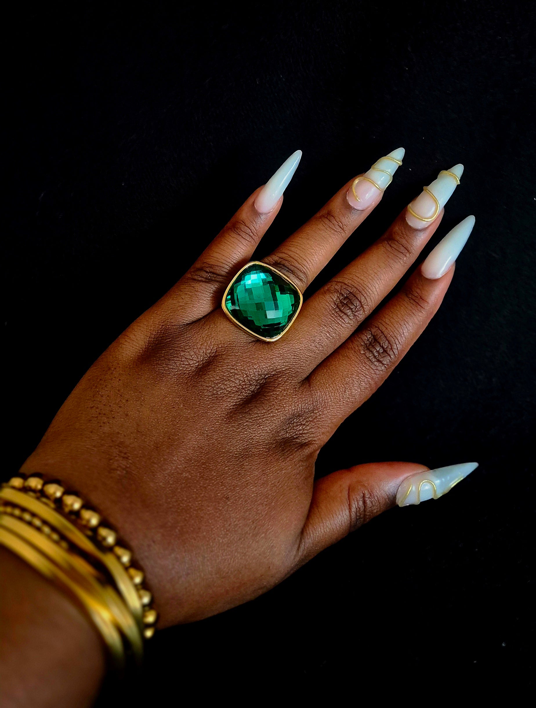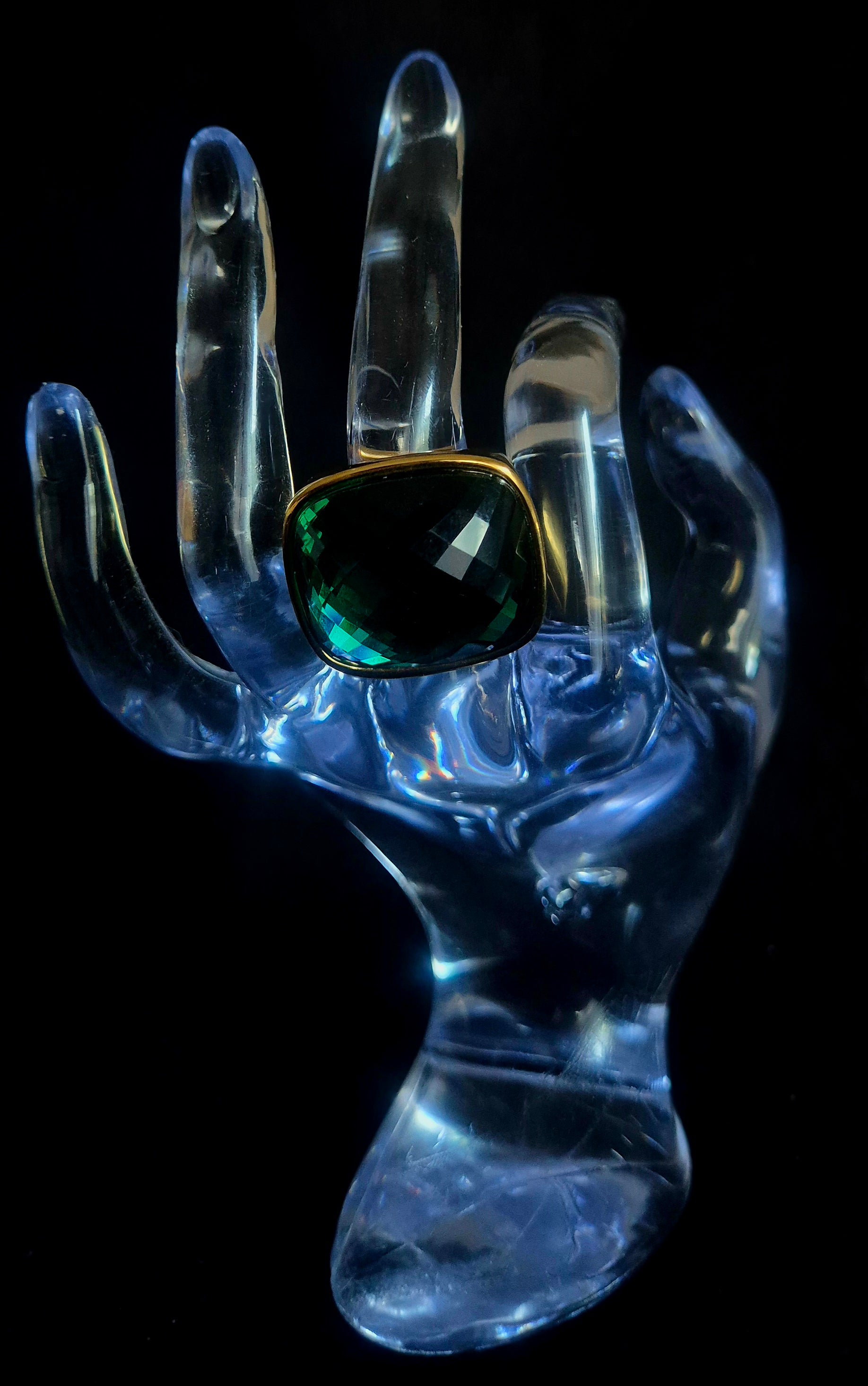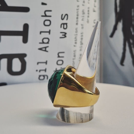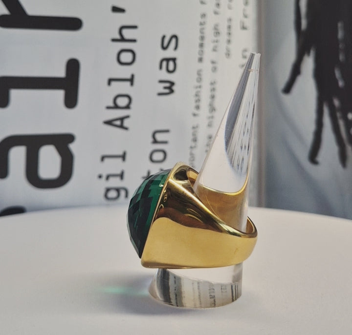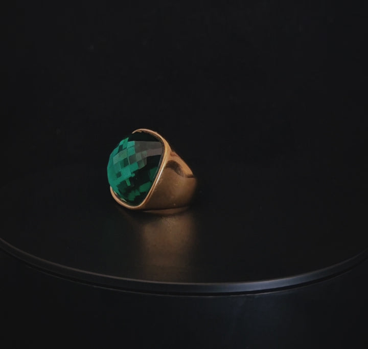 Bague en acier inoxydable dorée & pierre verte