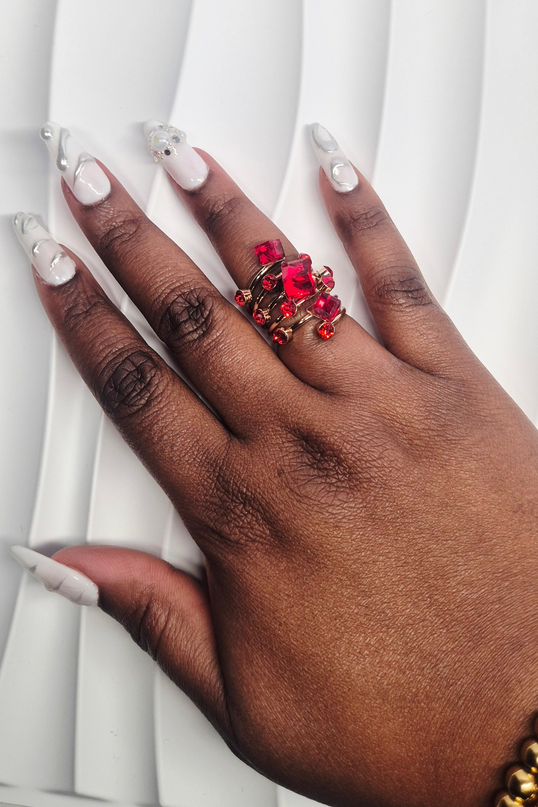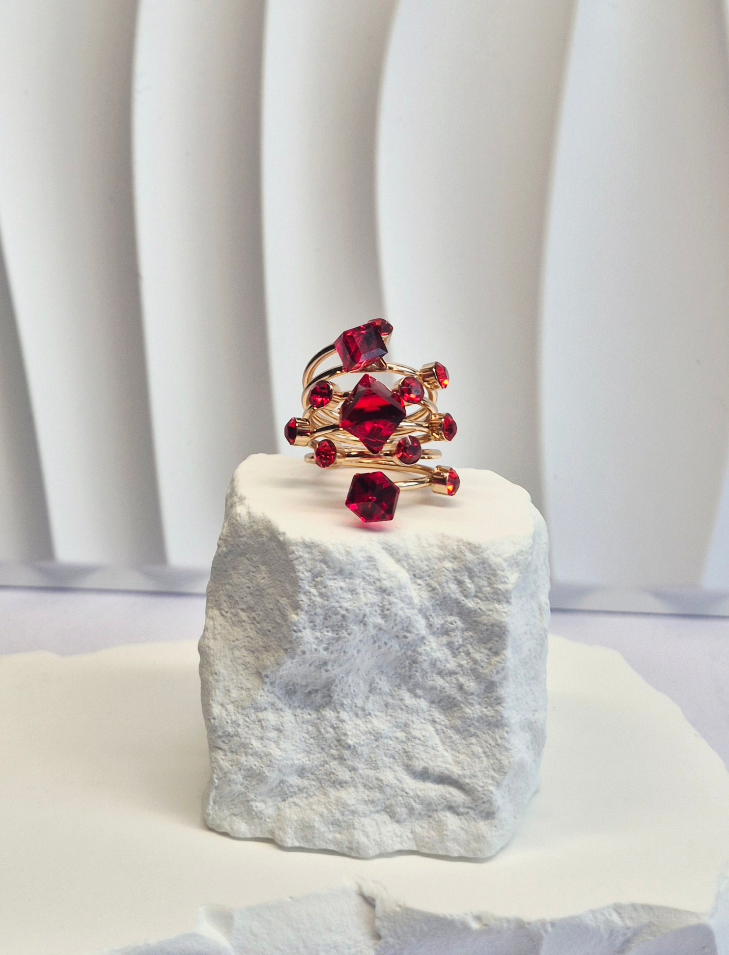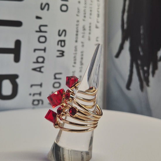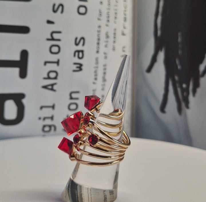 Bague en acier inoxydable dorée & rouge