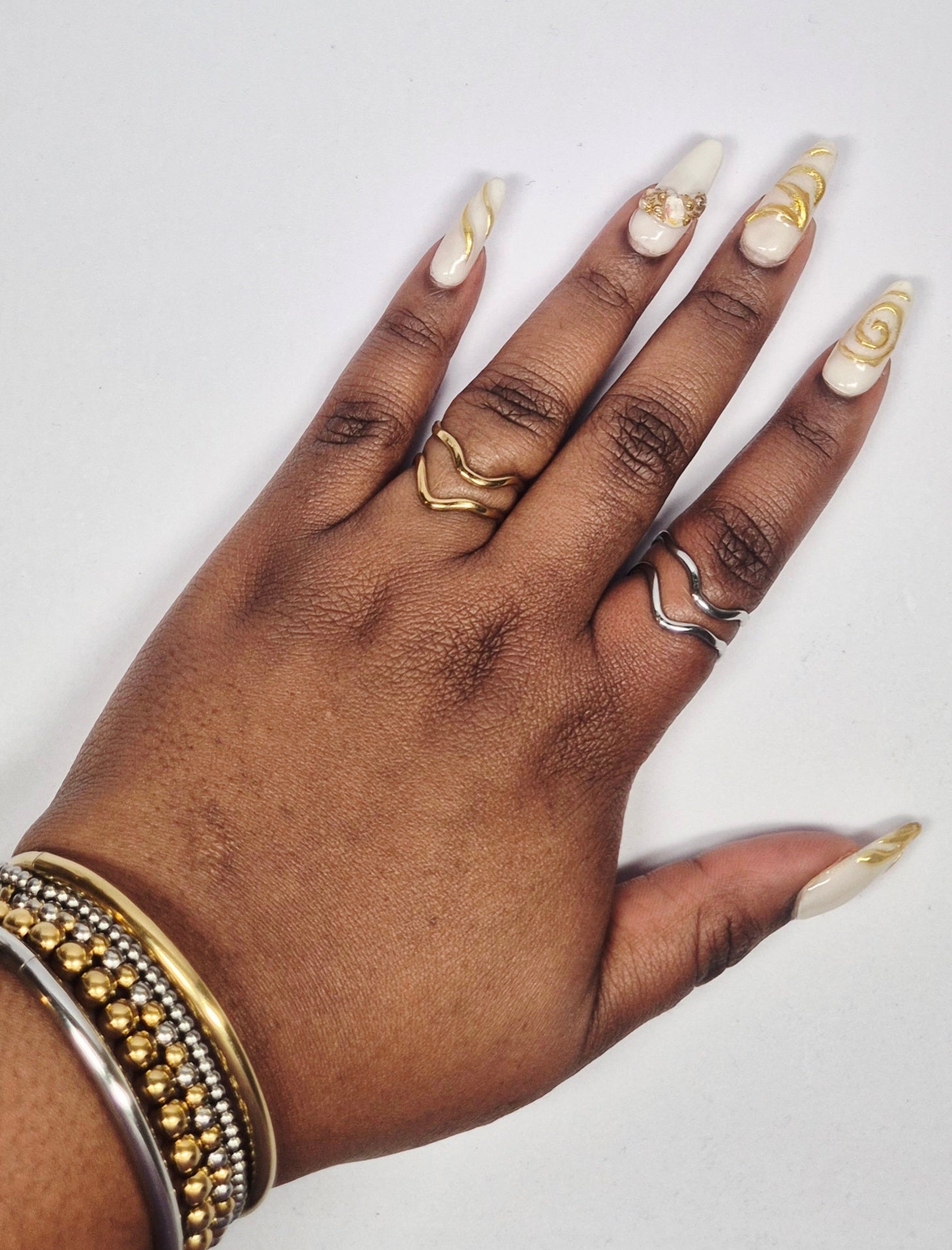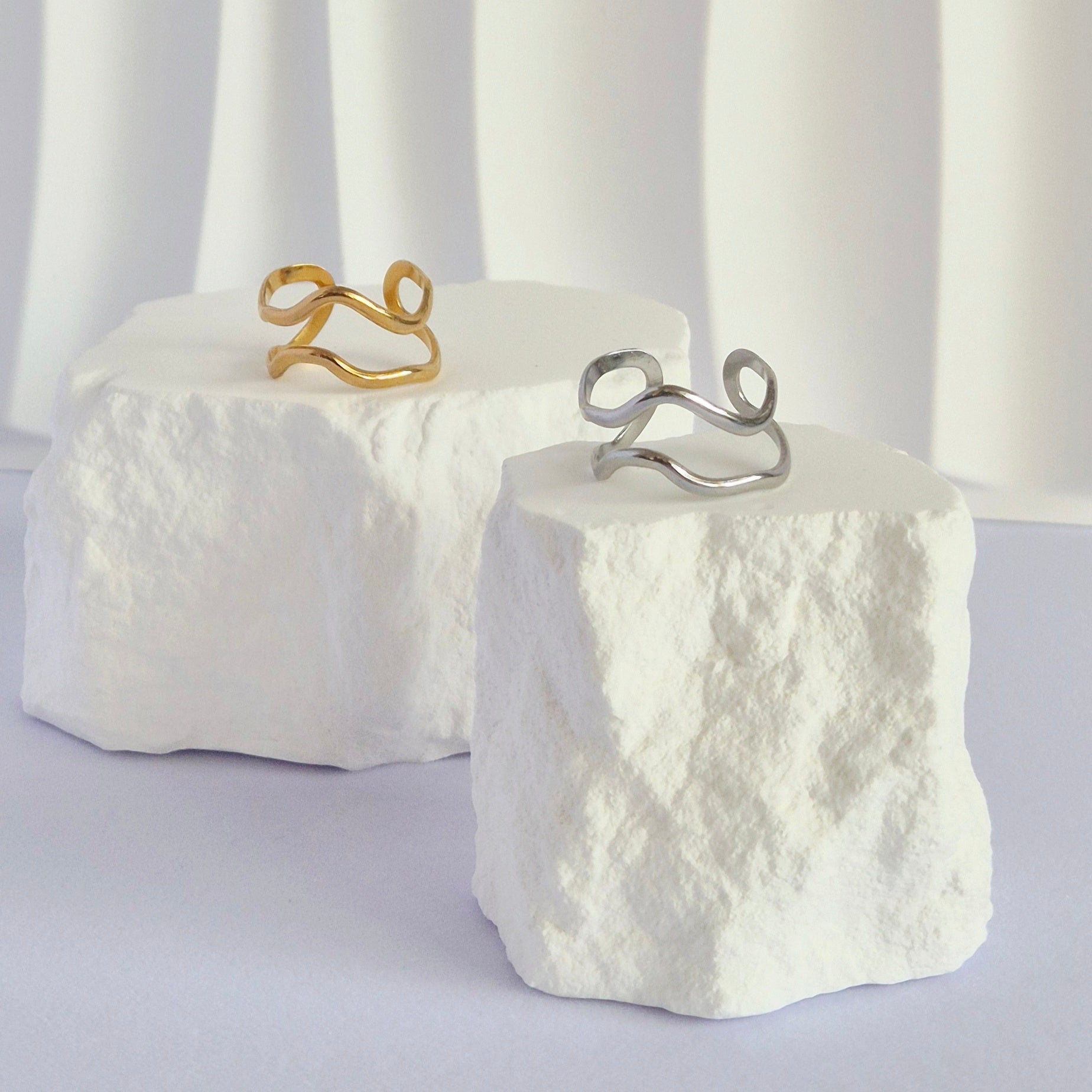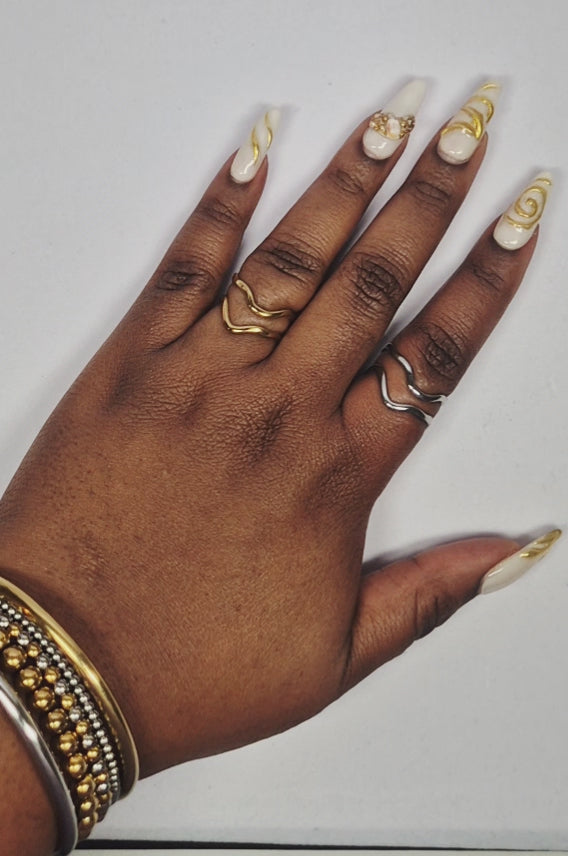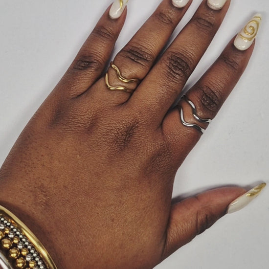 Duo de bagues en acier inoxydable dorée et argentée