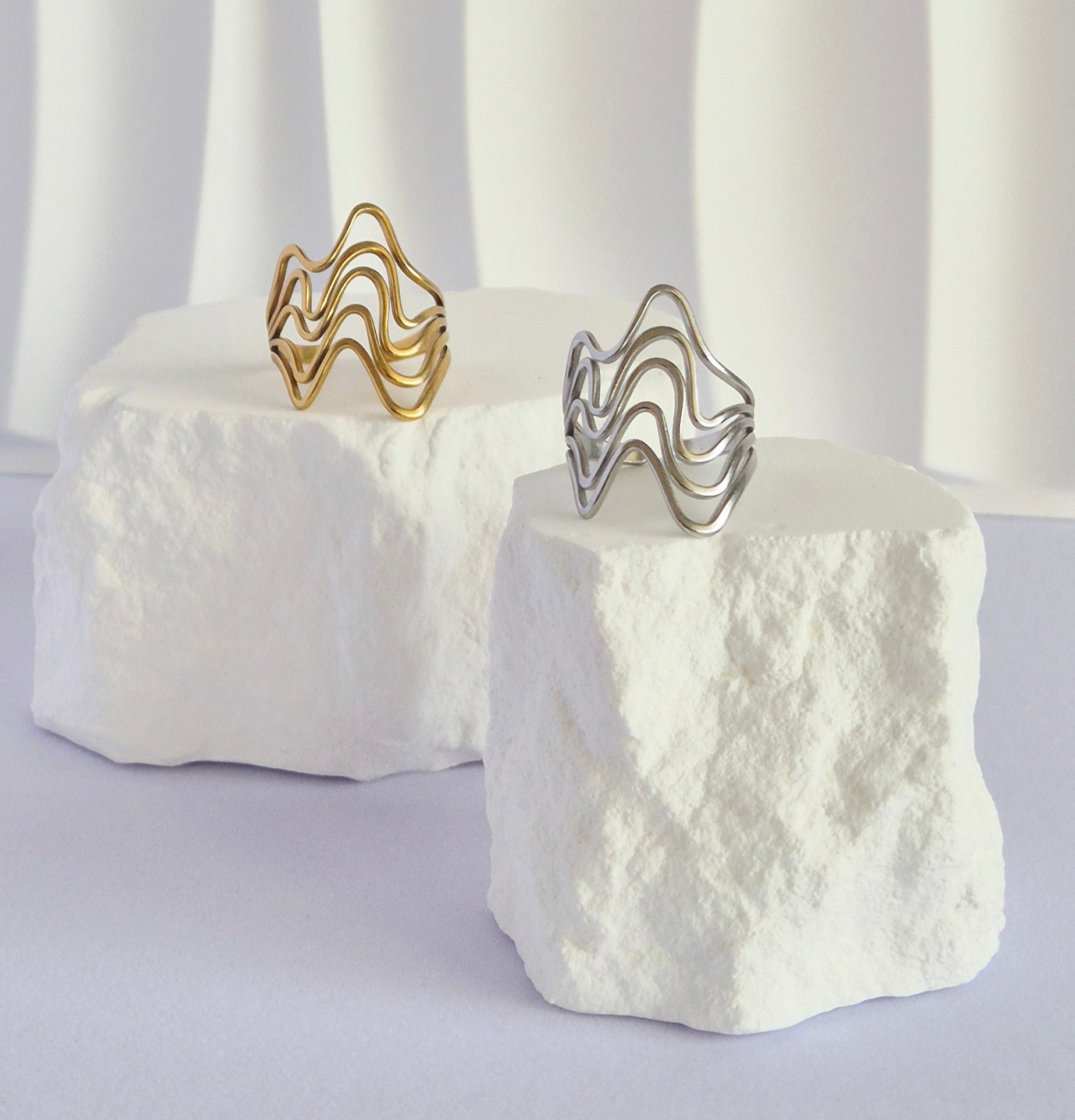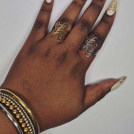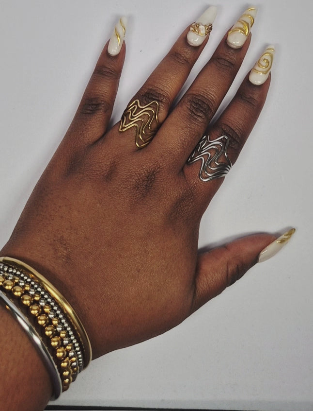 Duo de bagues en acier inoxydable dorée et argentée
