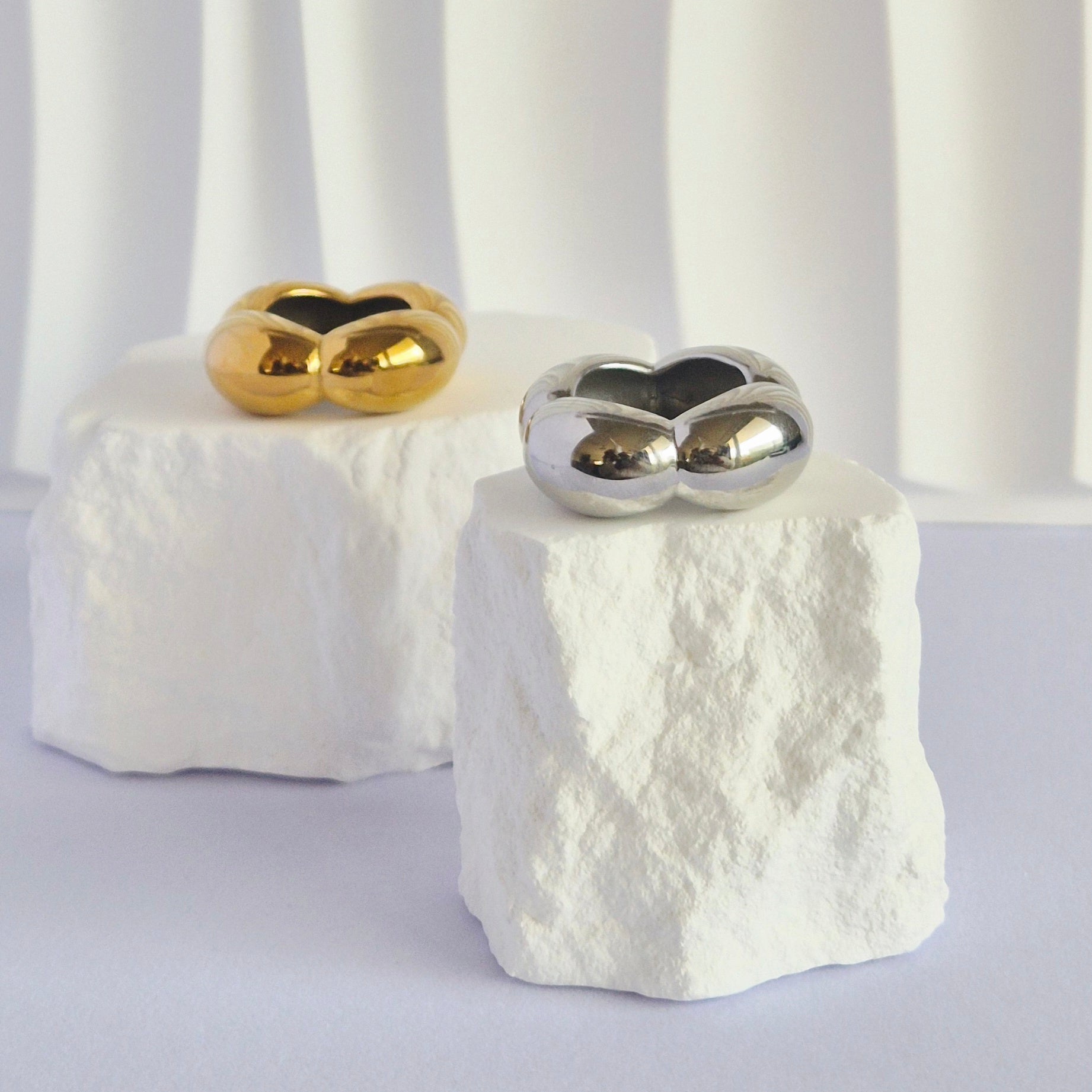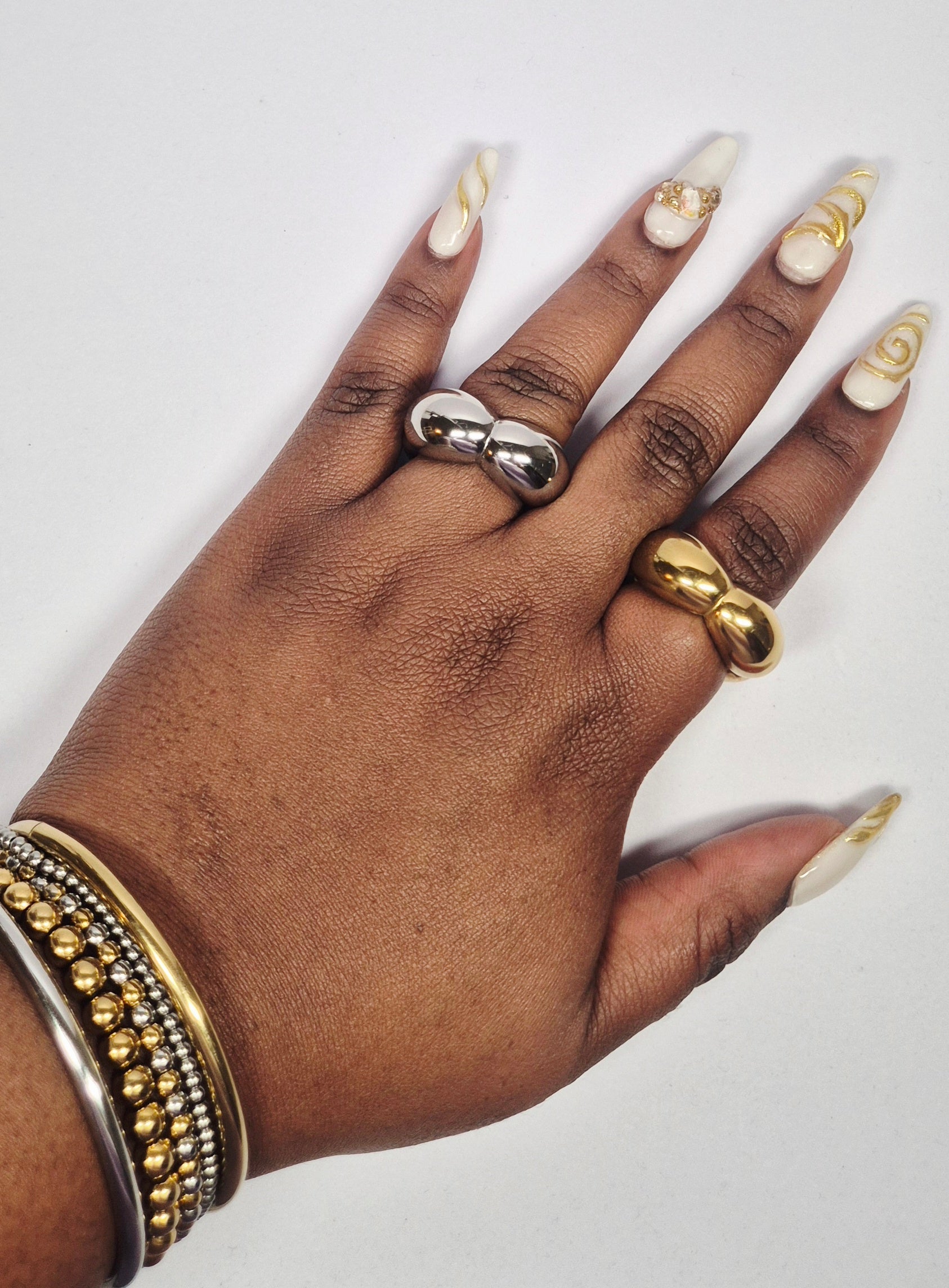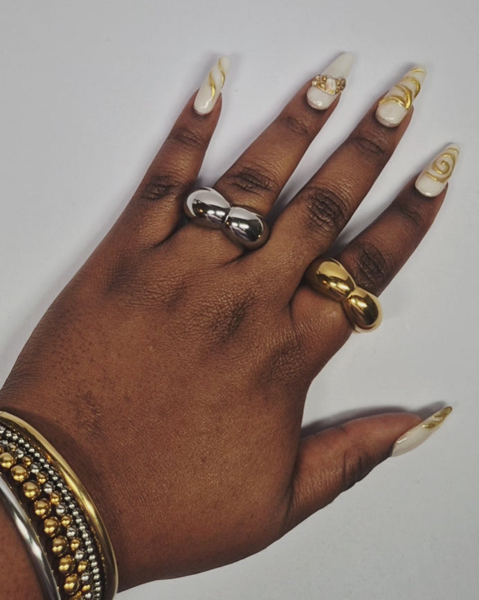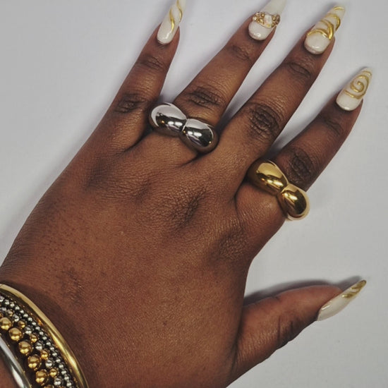 Duo de bagues en acier inoxydable dorée et argentée