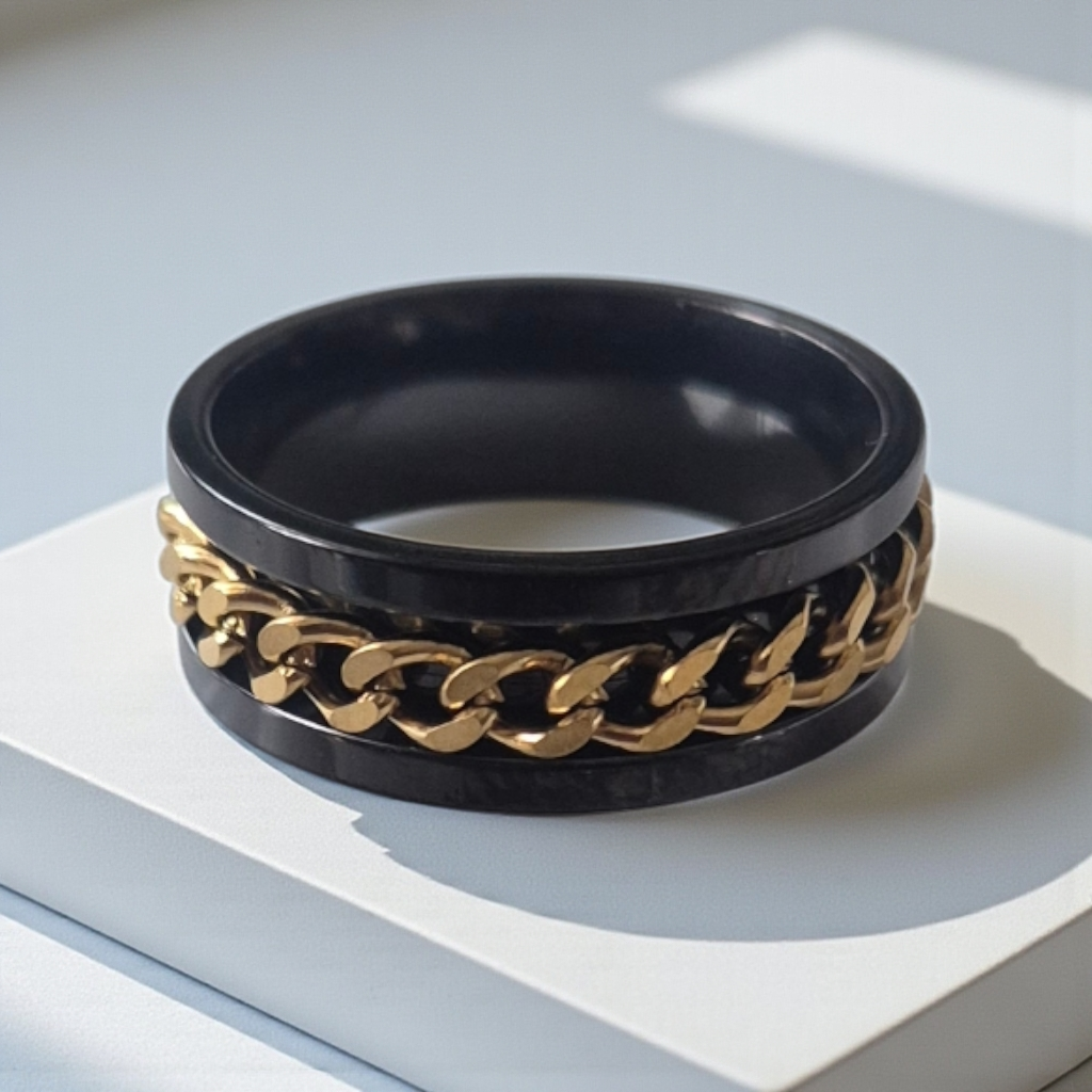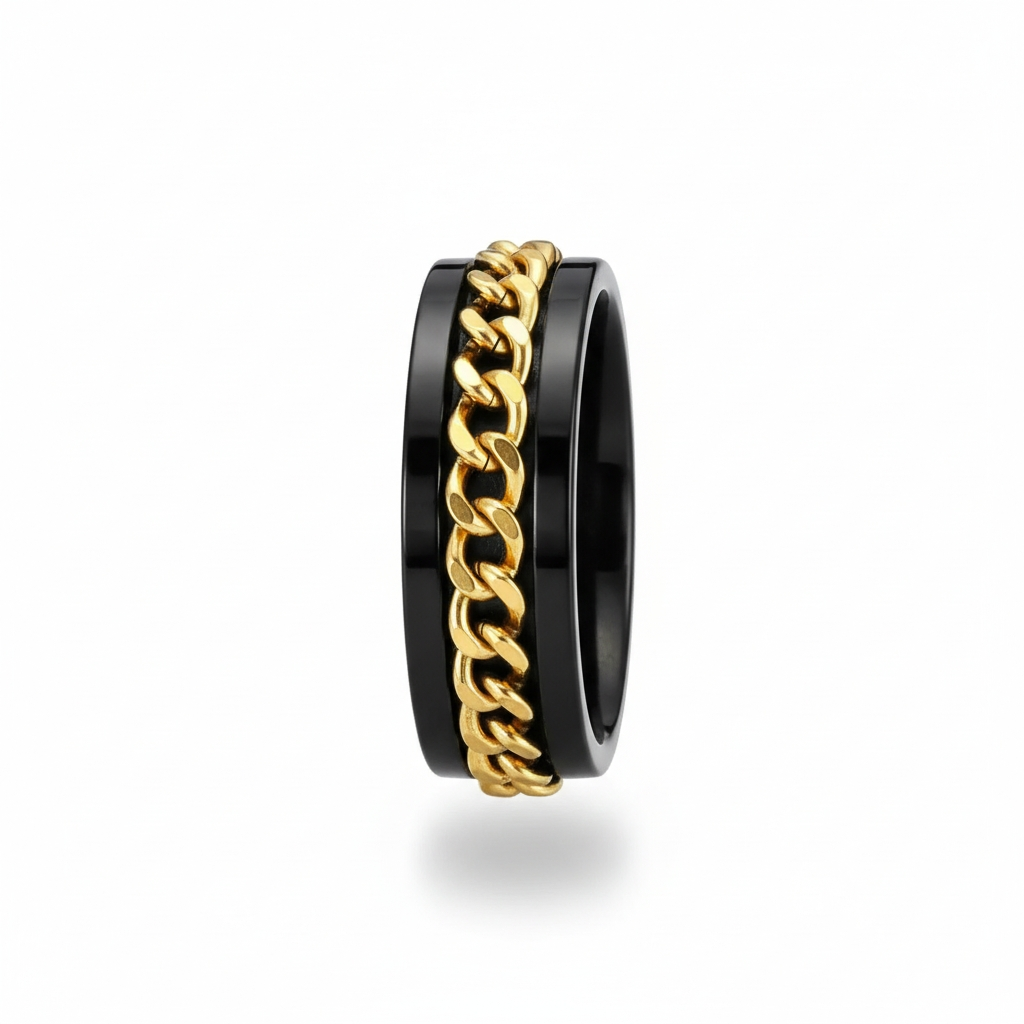 Bague en acier inoxydable dorée et noire