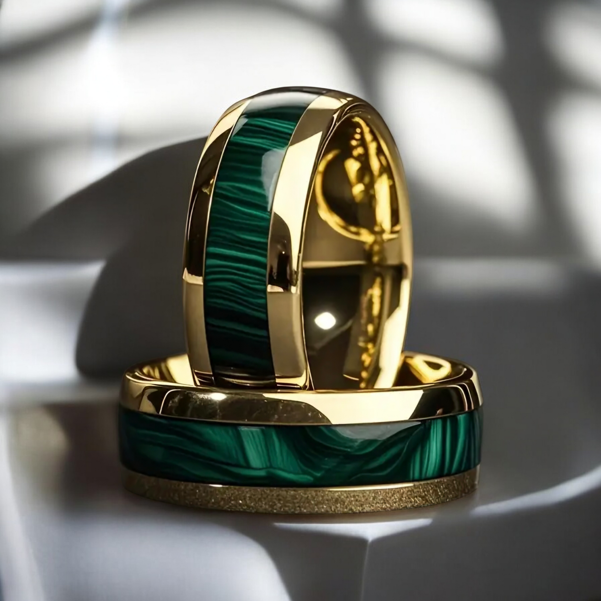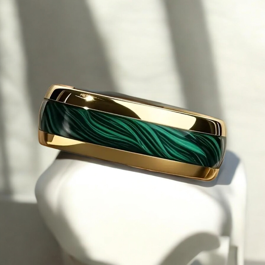 Bague en acier inoxydable dorée et verte