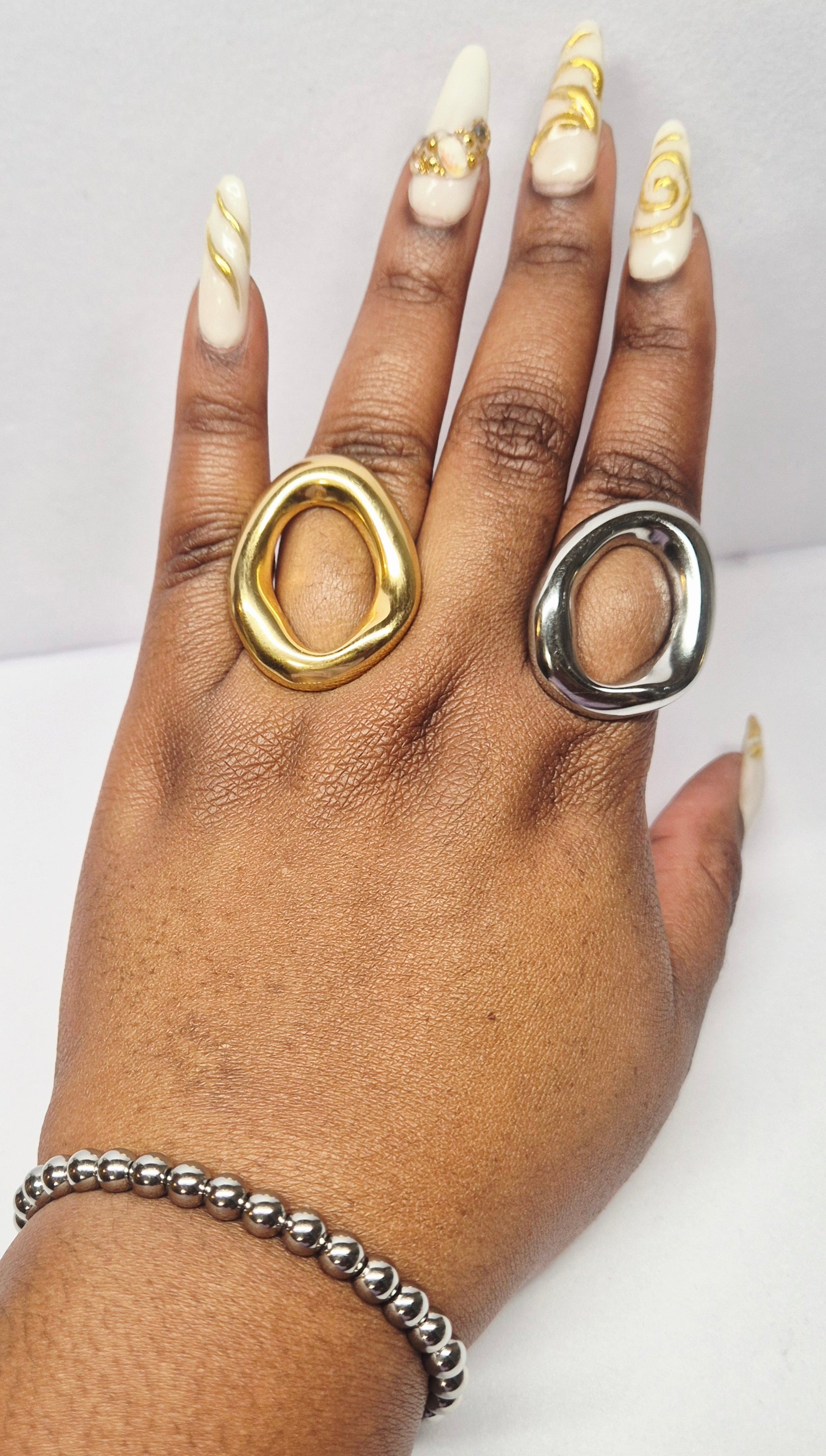 Bracelet en perles en acier inoxydable élastique argenté
